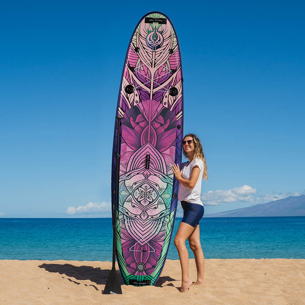 Brought this board so my daughter and I could go out on the river together. The quality of the craftsmanship is amazing! Colours are stunning and it’s bulking or uncomfortable when deflated.